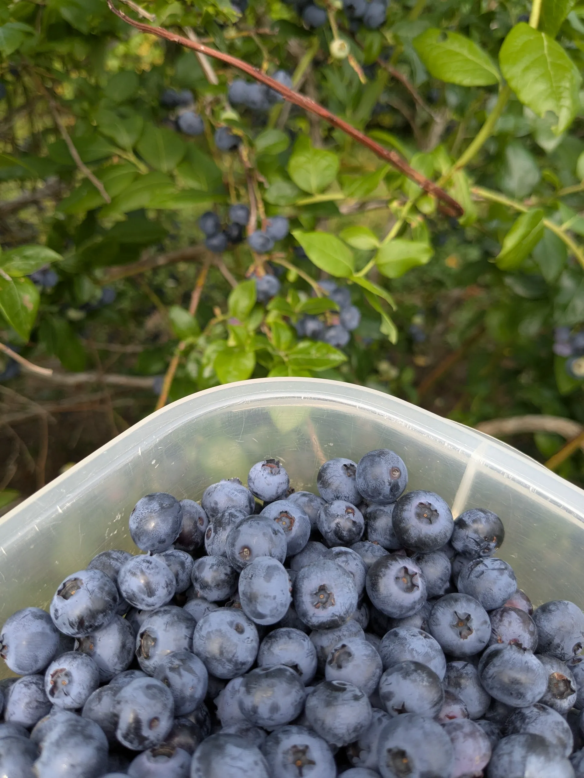 Ici, les bleuets sont en abondance. Pas besoin de jouer à cache-cache avec les fruits : ils sont là, généreux, prêts à être cueillis. Mon panier s’est rempli tellement vite que j’ai dû négocier avec moi-même pour ne pas tout manger sur place (disons que quelques-uns ont quand même « mystérieusement » disparu en chemin).