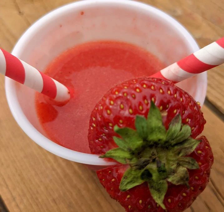 De retour au kiosque pour régler notre achat, nous découvrons des produits qu’il est impossible de laisser sur la tablette ! D’abord, un rouleau de fraises déshydratées – mais à quoi cela peut-il bien servir ? Parfait pour agrémenter vos cocktails ou pour ajouter à vos céréales, c’est tout simplement délicieux ! Et puis, au tableau des prix, une surprise : une slush aux fraises faite avec leurs fraises biologiques, accompagnée de leur propre sirop d’érable. On peut même y ajouter un jet de crème ! Impossible de résister, on opte pour la totale et c’est tellement bon qu’on aurait aimé en emporter des litres !
